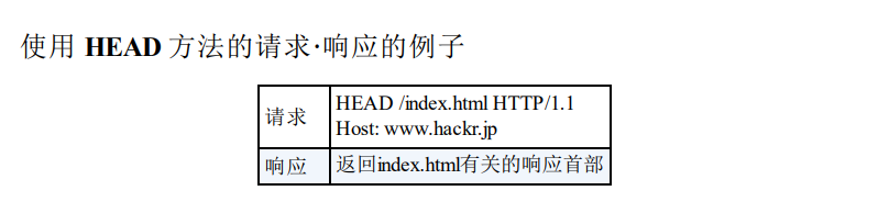 HEAD方法和GET方法一样,只是不返回报文主体部分,用于确认URI的有效性及资源更新的日期时间等